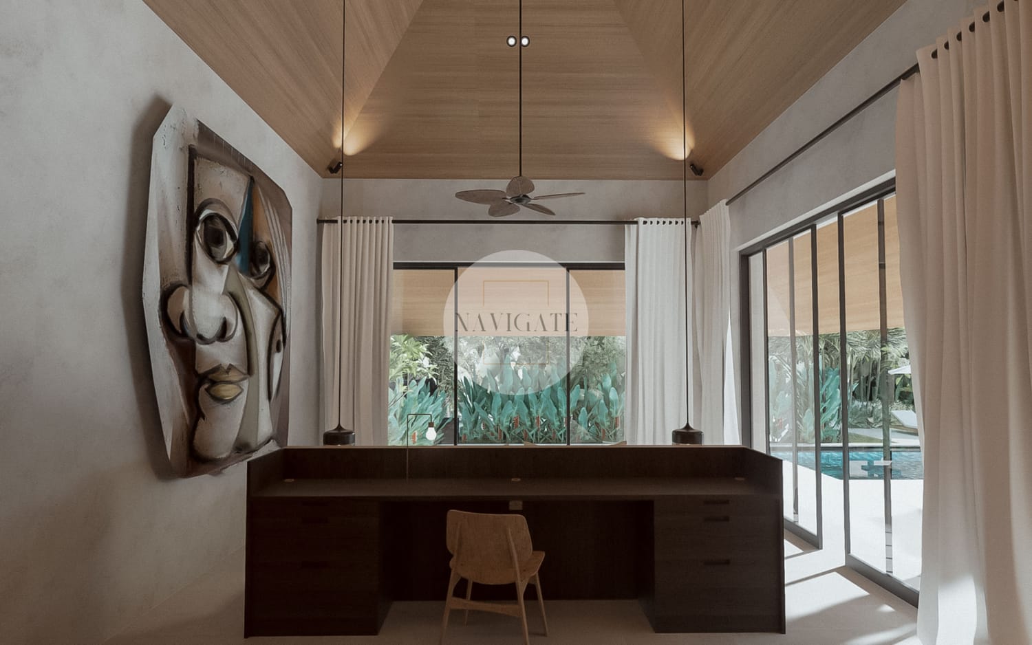 Built in a modern minimalist style, the villa combines high-end natural materials like teak wood and natural stone, ensuring sustainability and timeless appeal. Every detail has been carefully considered, from quality insulation to family-friendly layouts, creating a residence that perfectly blends functionality with refined style.
