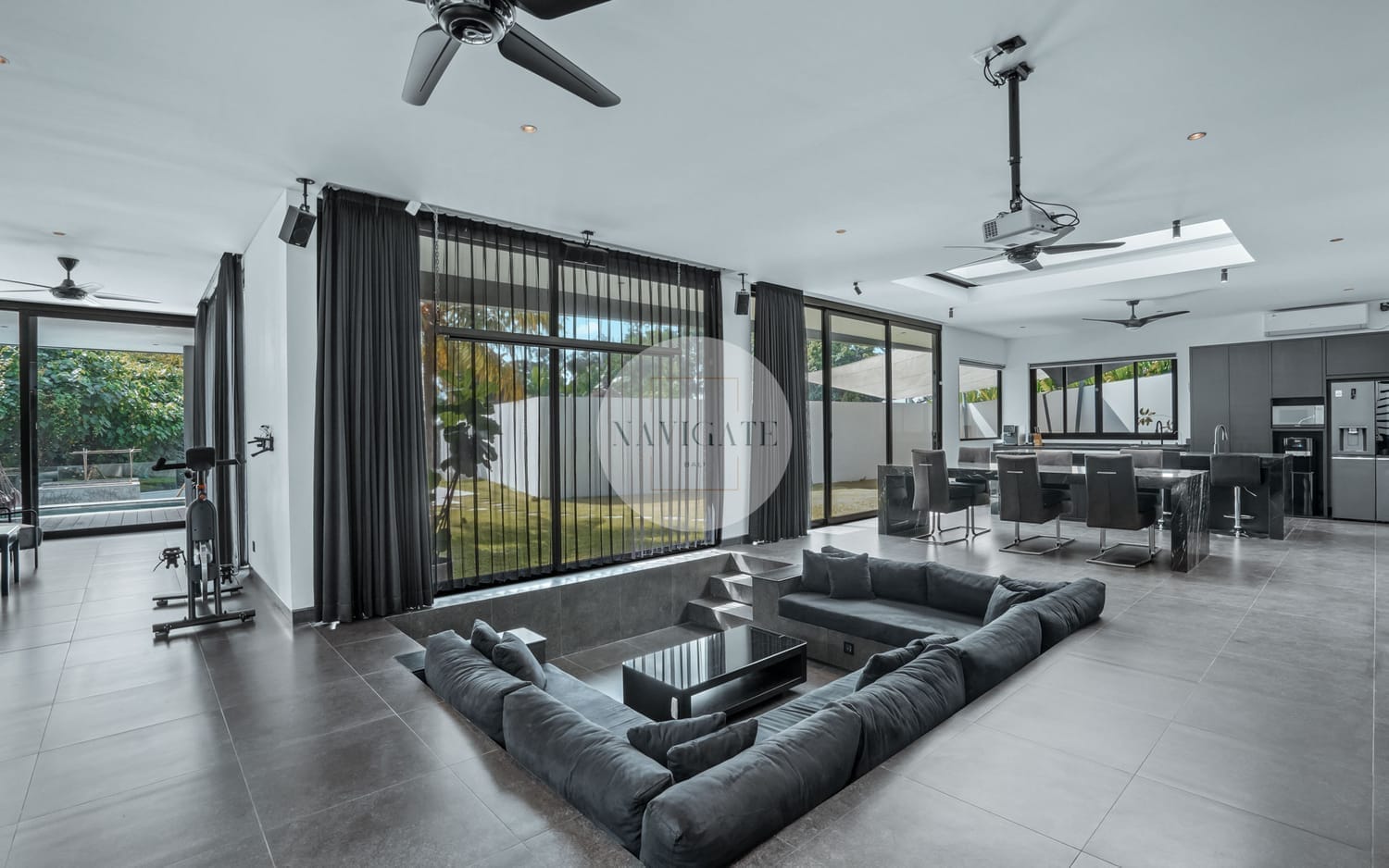 This modern two-level villa sits on 7 are (700m²) of land with a spacious 240m² building, surrounded by a large garden ideal for children and pets. The villa comes fully furnished and is equipped for modern living — from an indoor garden and cooking island kitchen to a private gym, sauna, jacuzzi and wine cellar.