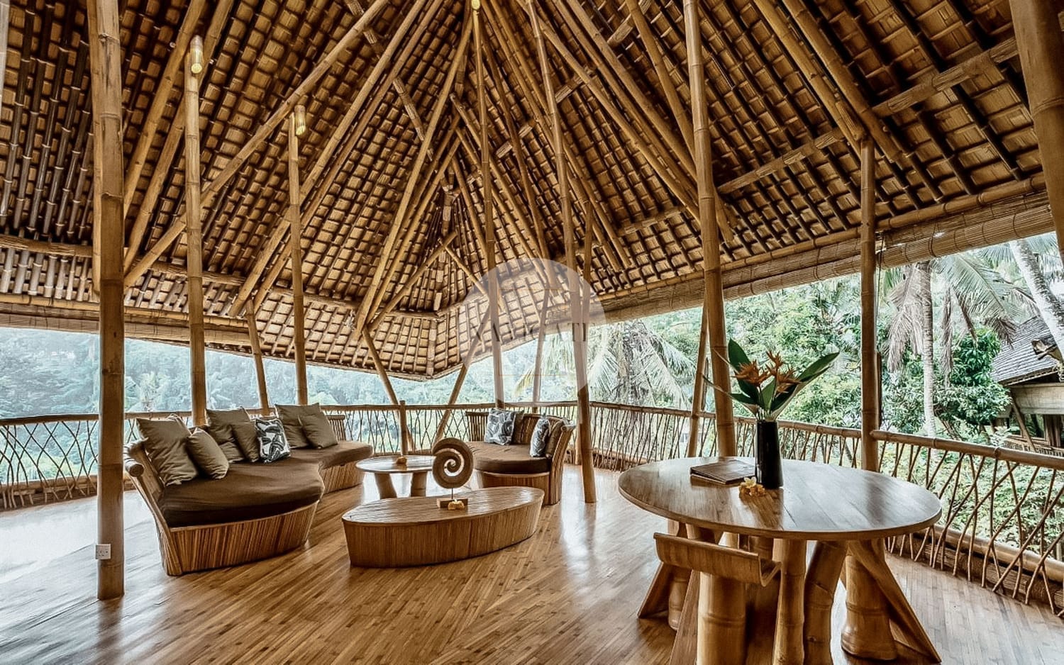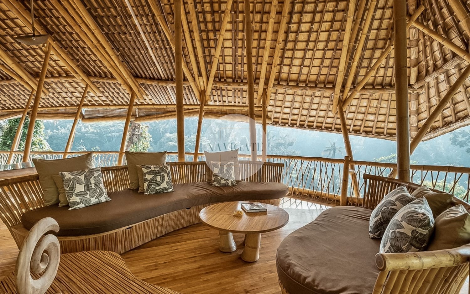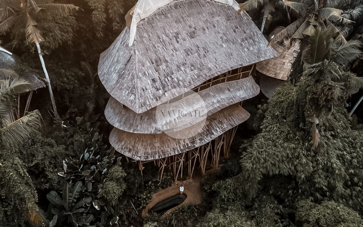 Villa Daun in Sibang is an extraordinary four-storey bamboo residence whose architecture is uniquely shaped like a leaf, blending harmoniously with nature while offering modern comfort. Rising gracefully above the jungle canopy, the villa opens to sweeping sunrise views over the Ayung River valley. Set within a vibrant community compound, it is not only a private sanctuary but also a gateway to shared experiences, with access to a large communal pool and a diverse program of activities such as yoga sessions, cultural workshops, river walks, communal dinners, and engaging kids’ programs.