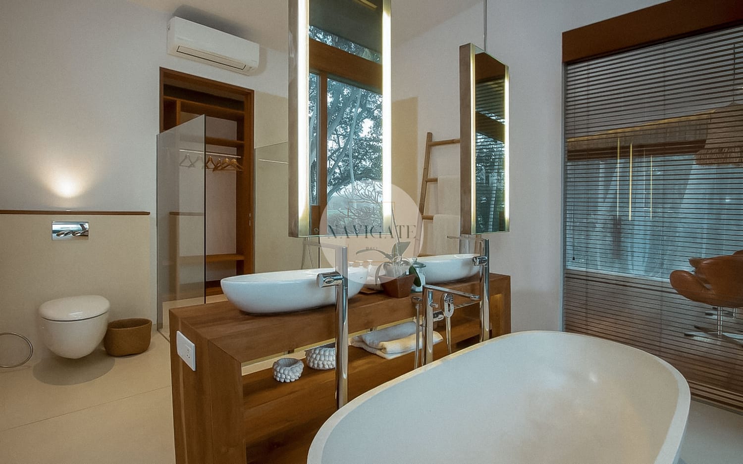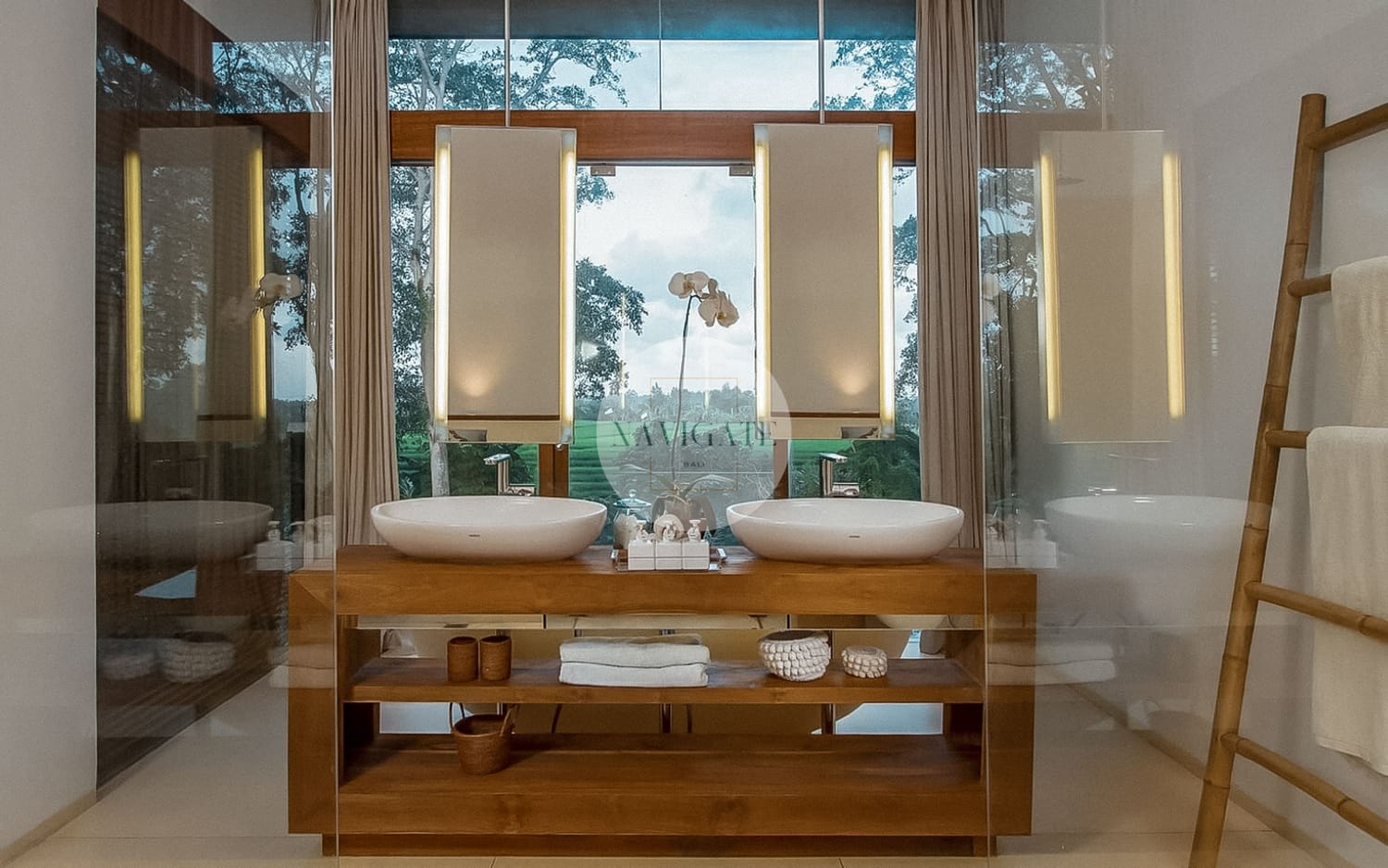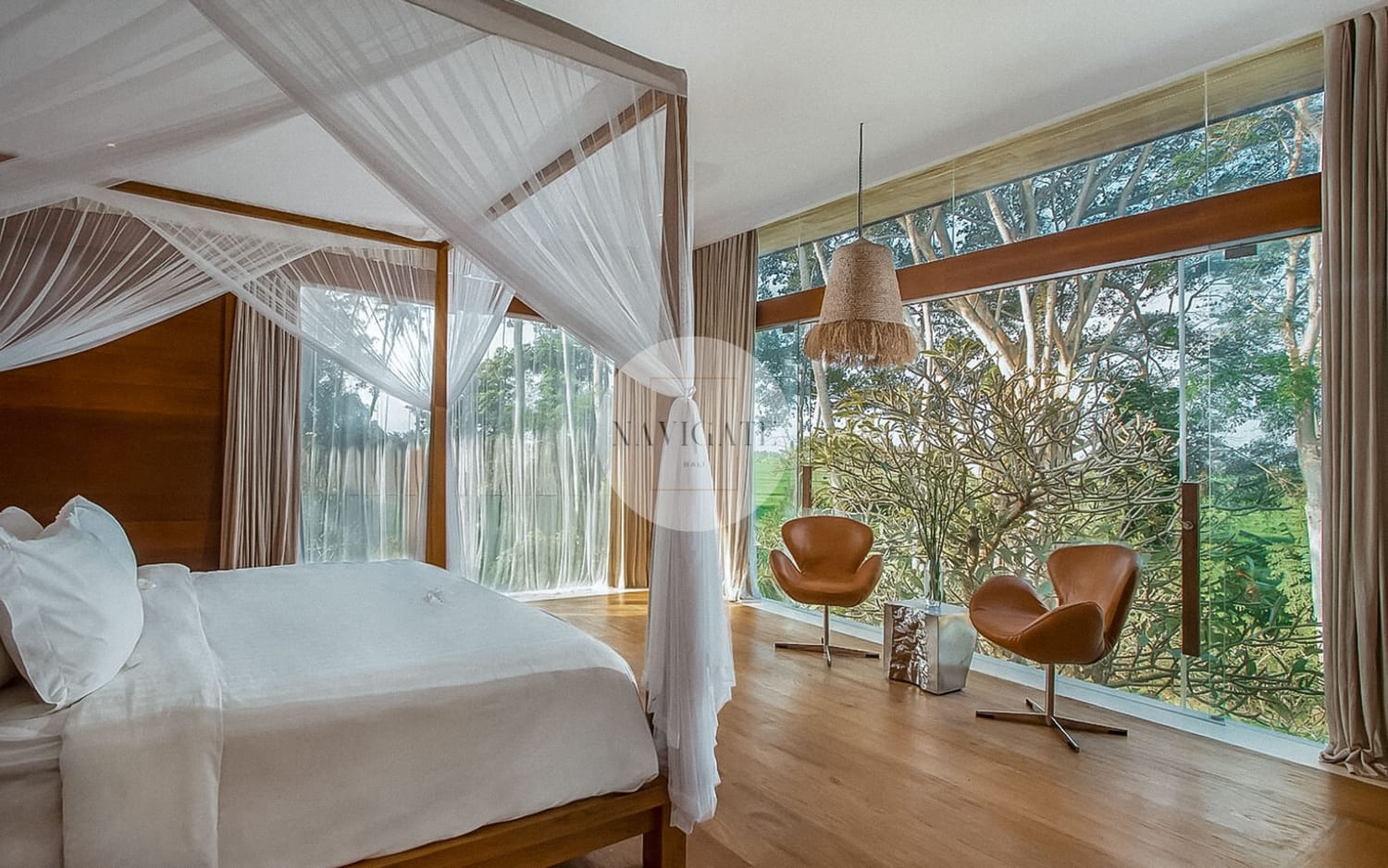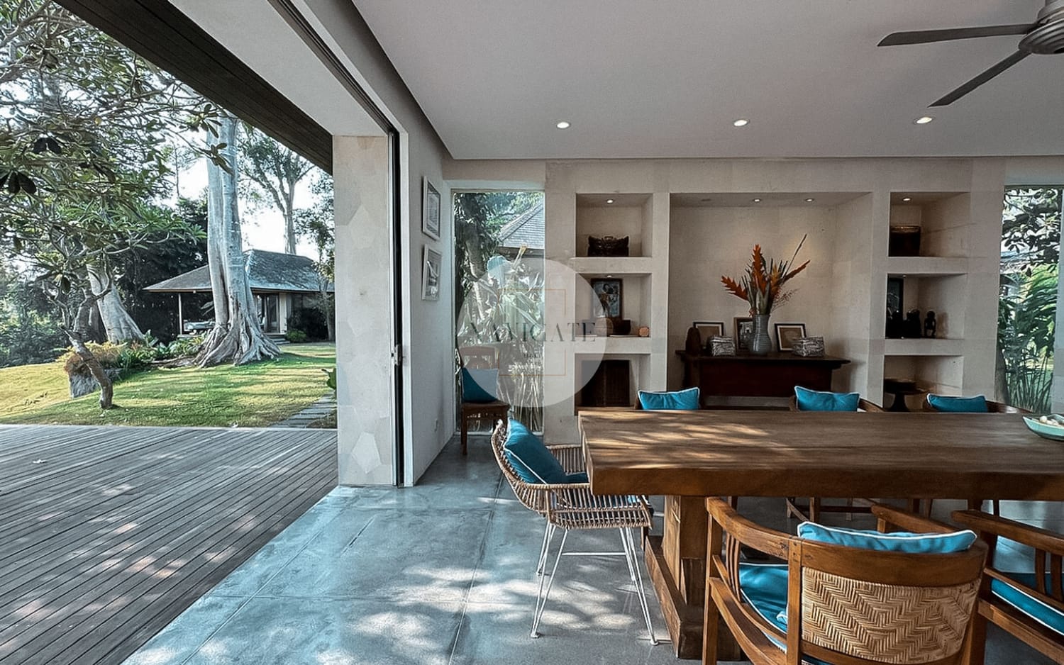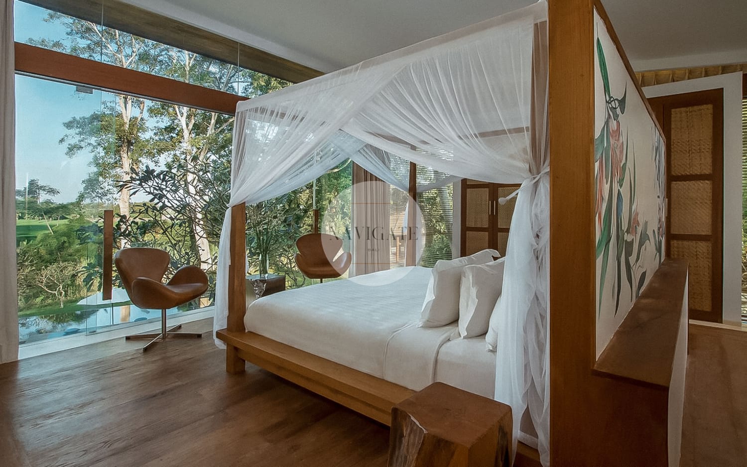 Comprised of 5 luxury bedrooms with privacy in mind and 180-degree views of rice fields stretching infinitely towards Mount Agung and the ocean as the beach is 300 meters from the main entrance.