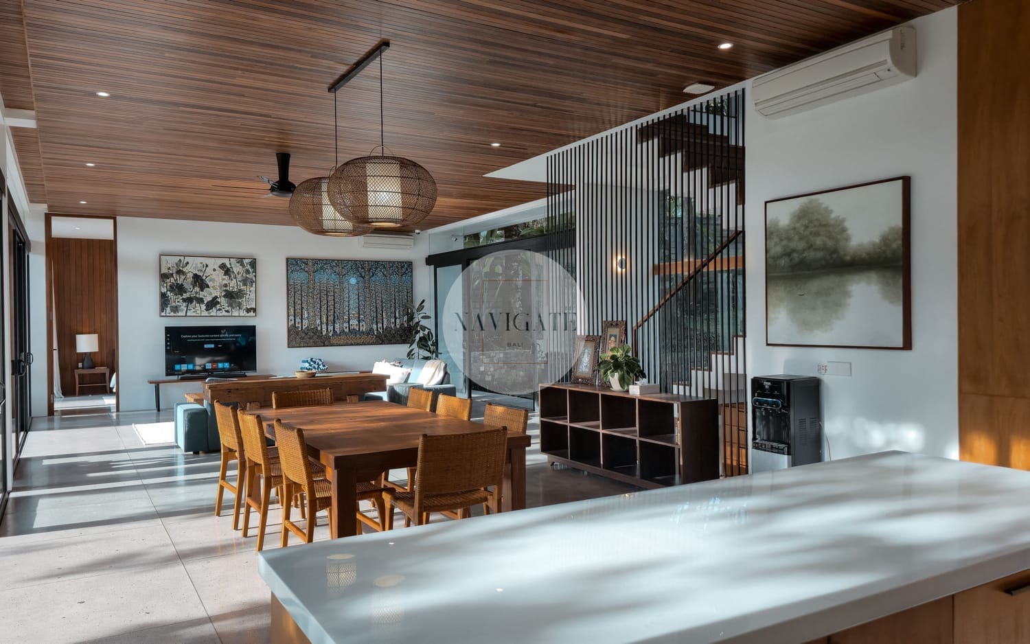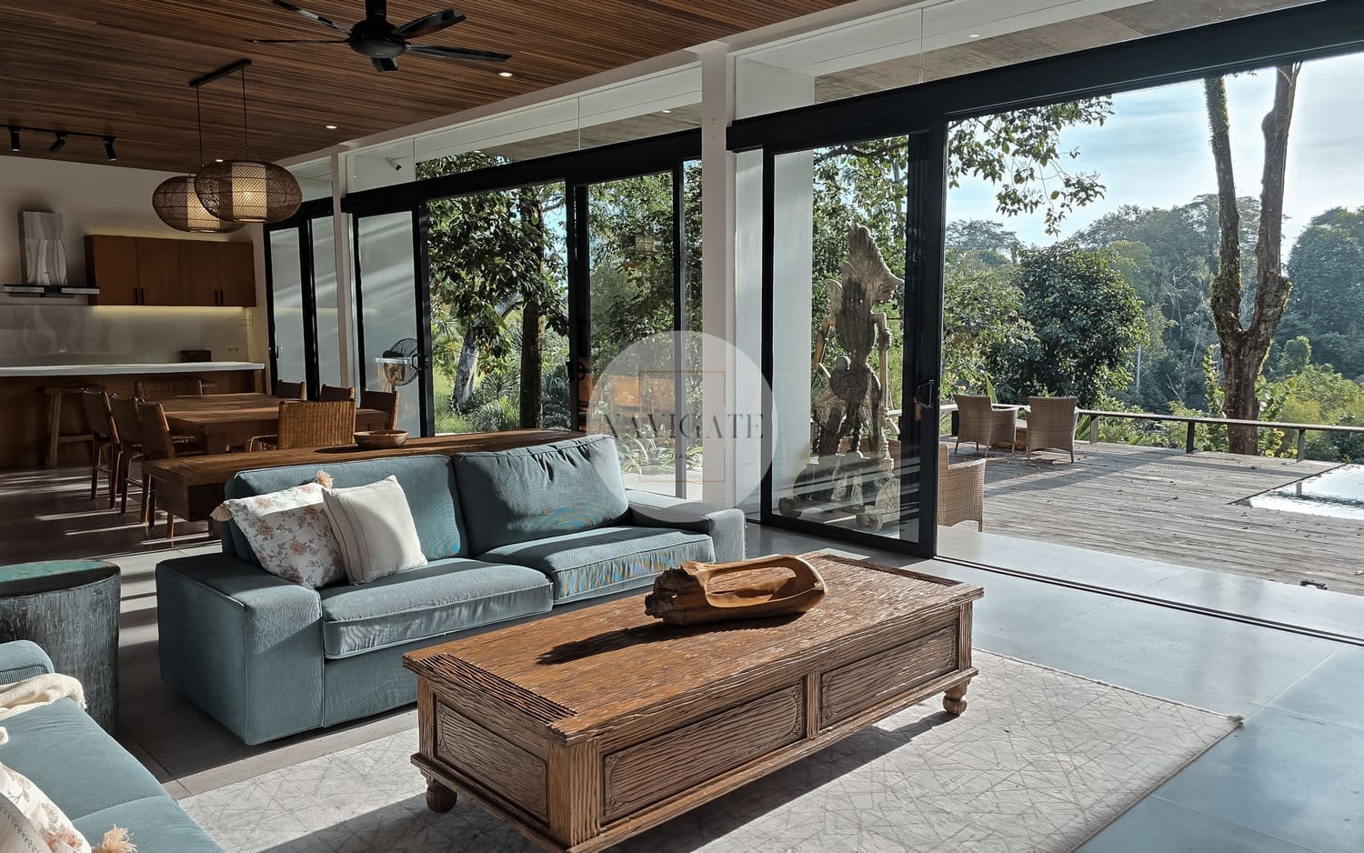 This family-style villa seamlessly blends contemporary living with lush jungle landscapes. The open-style living space, along with the spacious kitchen (with large pantry) and dining area, can be easily enclosed, opened up (quality flyscreen installed), ensuring excellent cross ventilation.